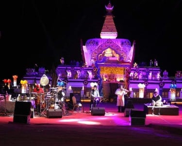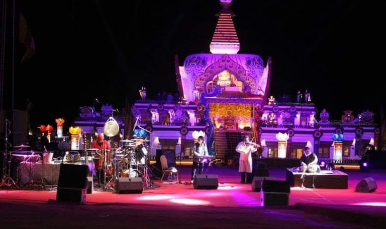 Outdoor stage at monastery, ~3,500m altitude: wind/temperature constraints; rigging safety and broadcast levels coordination.