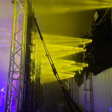 Outdoor stage at monastery, ~3,500m altitude: wind/temperature constraints; rigging safety and broadcast levels coordination.